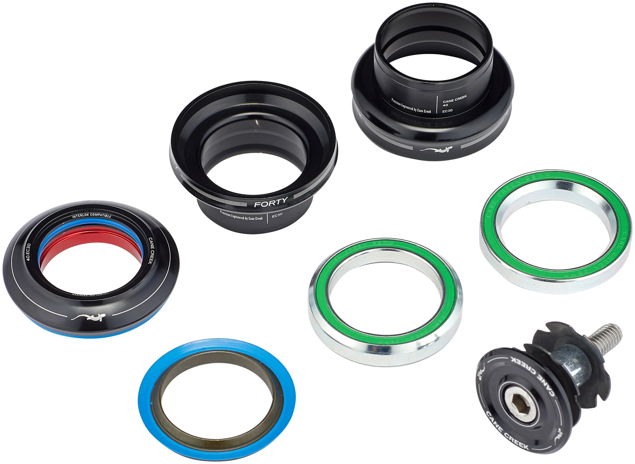 cane Creek gør det nemmere ved at udvikle ensartet grafik, udskiftelige dele og over 40 konfigurationer til at opfylde næsten alle størrelsesbehov. Cane Creeks -serie sælges som lige og koniske samlinger eller som toppe og bunde, og toppe fås med enten korte (9 mm) eller høje (15 mm) lagerdæksler med stakhøjde, og Cane Creeks 40-serie tilbyder det største fitmenteringsområde af alle headsets på markedet. Præcisionsfremstillet af Cane Creek i Fletcher, NC.